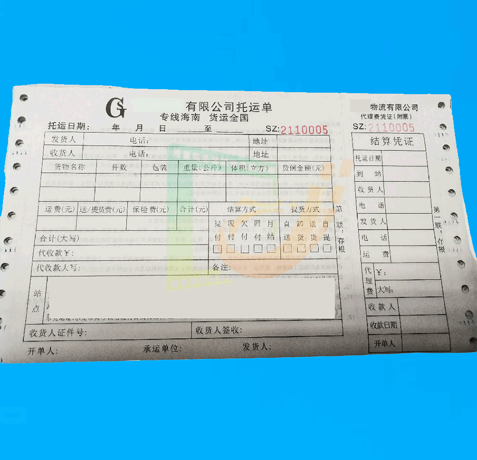 咨询:托运单印刷(带附票)